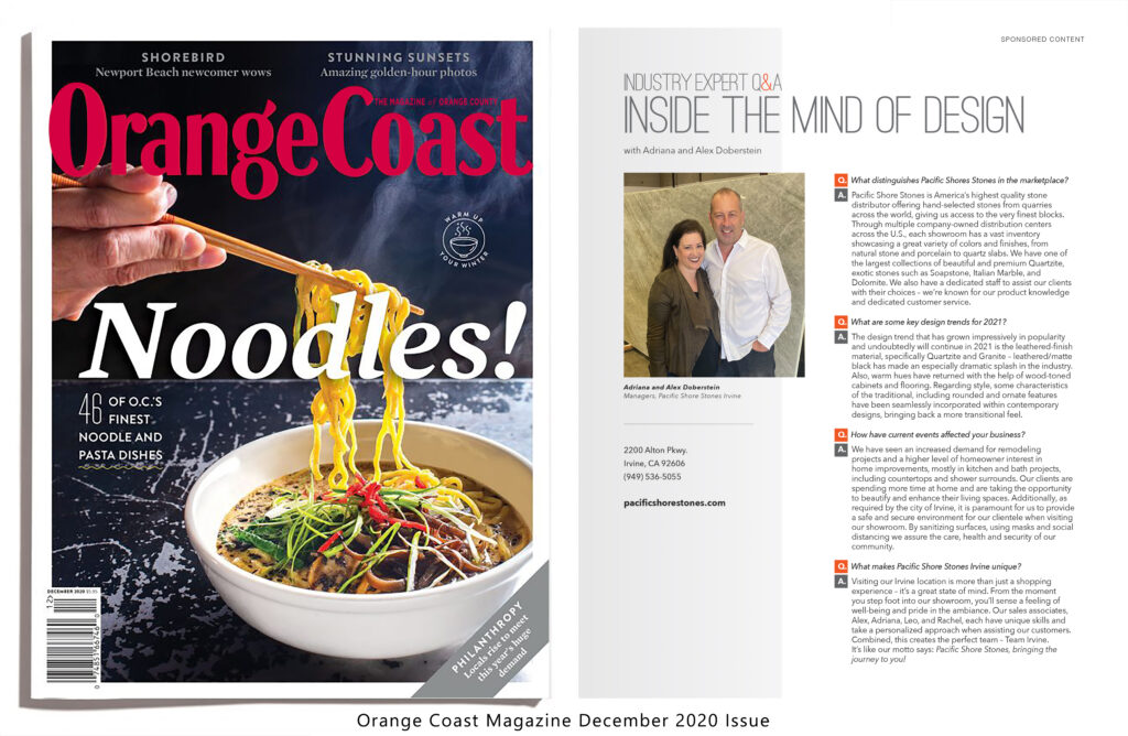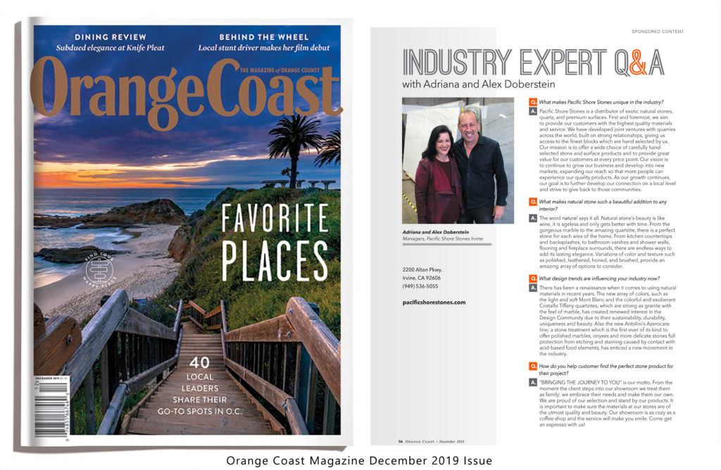 View Pacific Shore Stones recent features in publications from Orange Coast to Luxe magazines.